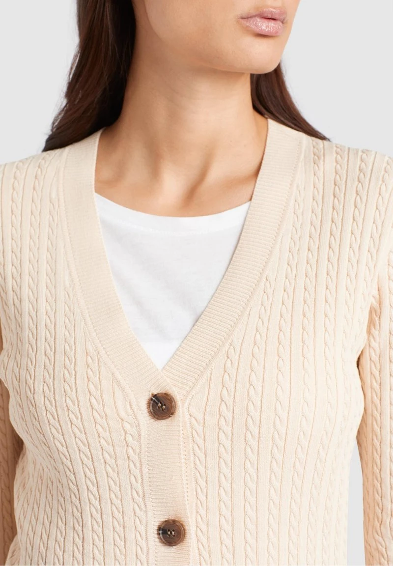 - Cuello/escote: En V pronunciado